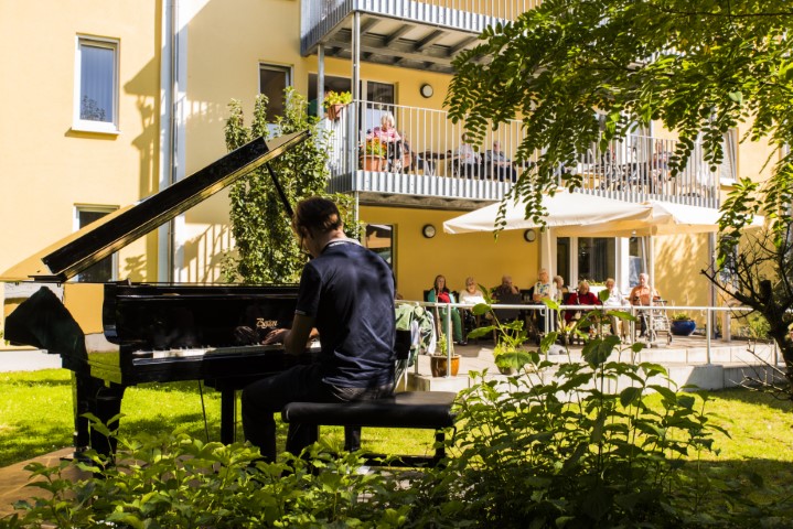 Freitag, 13.00 Uhr, Frau Weitze bekommt einen Anruf von der Tangobrücke. Ob wir im Rahmen der „Internationale Klavierakademie FEUERWERK Einbeck“ an einem Klavierkonzert interessiert sind? Sind wir! Was dann folgte war für den Begleitenden Dienst schon recht sportlich, denn bereits um 14.30 Uhr rollte ein Konzertflügel im Bauerngarten ein.
