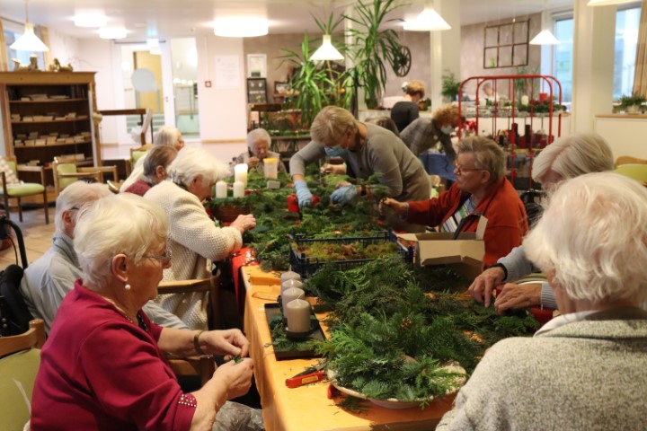 Bereits am Montag war der Tisch der Kreativgruppe, an dem die Gestecke für die Adventszeit gefertigt wurden, umlagert von Interessenten, die Gestecke und Kränze vorbestellen wollten. Auch nach einem Jahr Corona-Pause gilt immer noch: „Die schönste Advents- und Weihnachtsdekoration kann man in der Deinerline erwerben.“