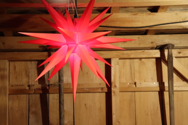 Im Jahre 2023 wurden in Herrenhut 800.000 Sterne produziert, von denen nun einer in unserem Stall hängt und schon im Advent auf die Weihnacht verweist. Die Sonntage bis zum Heiligen Abend wiederum werden von unserem Adventskranz gezählt und die Krippe führt mit Ochs und Esel, Schafen und Hirten, den Königen und der Heiligen Familie in die Erzählung der Weihnachtsgeschichte ein.