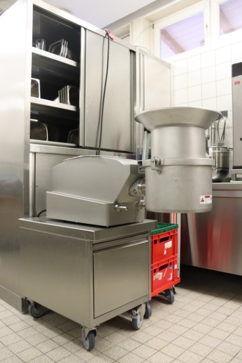 Frau Thüne ist stolz, denn in der Küche der Deinerlinde leistet nun ein nagelneuer Küchenalleskönner seine Arbeit. Er kann Gemüse raspeln oder in Scheiben schneiden, kann es in Stifte schneiden oder zu Mus pressen, kann Kartoffeln reiben oder alles Beliebige durch den Fleischwolf drehen.