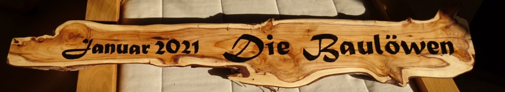 Wir sind stolz und wollen es auch zeigen. Deshalb haben die Baulöwen auch ein Schild für ihren Holzschober anfertigen lassen, auf dem das Datum der Fertigstellung ihres ersten Bauwerkes abzulesen ist.