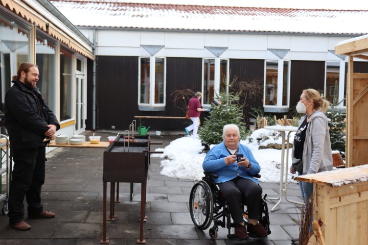 Und da die Baulöwen gerade beim Bau ihres Backhauses „Bergfest“ feiern, war dies Anlass genug, an der Kräuterschnecke Bratwurst und Glühwein anzubieten und mit allen Bewohnenden und Mitarbeitenden Abstand wahrend zu feiern.
